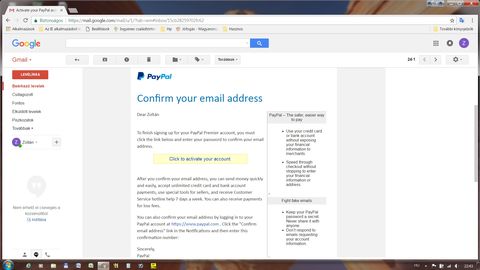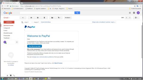 Ebben az e-mailben alul ez: You can also confirm your email address by logging in to your PayPal account at https://www.paypal.com . Click the "Confirm email address" link in the Notifications and then enter this confirmation number: arra vonatkozik, ha a link nem működne, mert a böngészőben tiltva lenne a felugró ablak vagy bármi.
