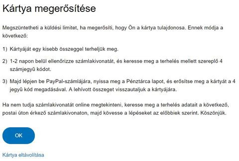 A PayPal-nál a kártyás rendszere egyáltalán nem szereti egy adott kártya le és felpakolását.