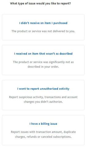 Pont ezt nem tudtam megértetni a paypal-al,a vásárlói védelem leírásában a linkek és a "vegye fel a kapcsolatot velünk ezen a bejelentési űrlapon" bevisznek a vitarendezési központba (resolution center).