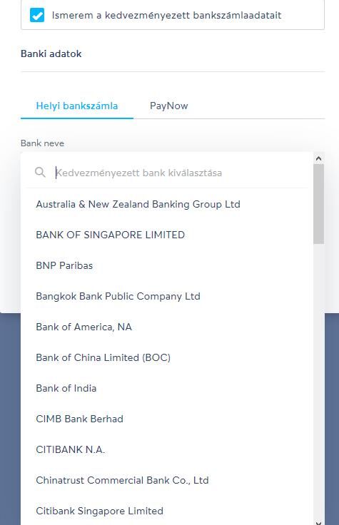 Beregisztráltam a Transferwise,-re de itt sajnos az ország választáskor nem lehet Singapurt választani.