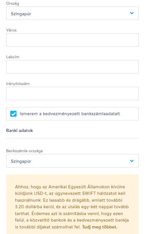 A PayPal az kiesik, azzal ne számolj, ez a rész a te bankszámládra való kiutalás, nincs a PayPal-ban más bankszámlára küldés, csak PayPal fiókra (e-mail cím) lehet küldeni pénzt.