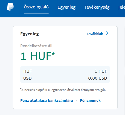 Csak számlája nyitó pénznemében kérhet átutalást PayPal-egyenlegéről,kivéve ha a PayPal egyéb módon rendelkezik.