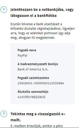 A forintos számlájuk van az Unicredit-nél, ami átjáró a forintos egyenleg feltöltésre és a forintos bankszámlákra a PayPal egyenlegről történő pénz kiküldésre.