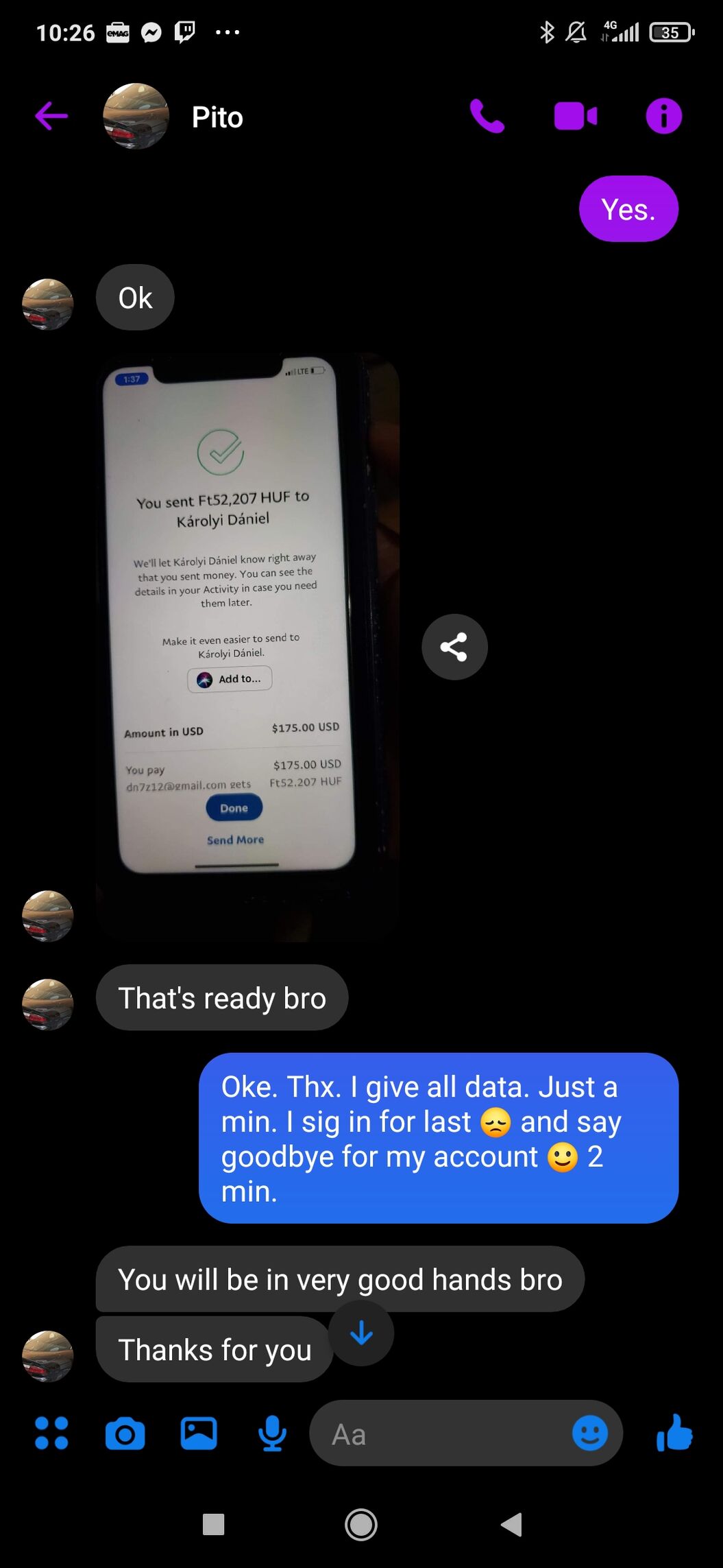 .Még 2020.10.19.-én eladtam egy internetes játék profilt a neten. A fizetésre paypal lett használva( 52.000). A tegnapi napon az akkori vásárló bejelentette, hogy az ő engedélye nélkül lett végrehajtva a tranzakció. Messengeren beszéltem a vevővel( külföldi), aki azt mondta, hogy megvárja a fizetését, aztán megveszi. Majd másnap írt újra, hogy a barátnőjével beszélt és megelőlegezi neki az összeget, így meg tudja venni azonnal. Ezt követően kaptam is az utalást. Én pedig természetesen átadtam a profilt, ahogy meg is lett beszélve. Remélem nem kell egy ilyen csaló miatt fizetnem úgy, hogy én tartottam a szavam... Ha mégis a kö**ög vevő javára ítél a PayPal a pénzt levonhatják a fiókomhoz rendelt bankkártyáról? -