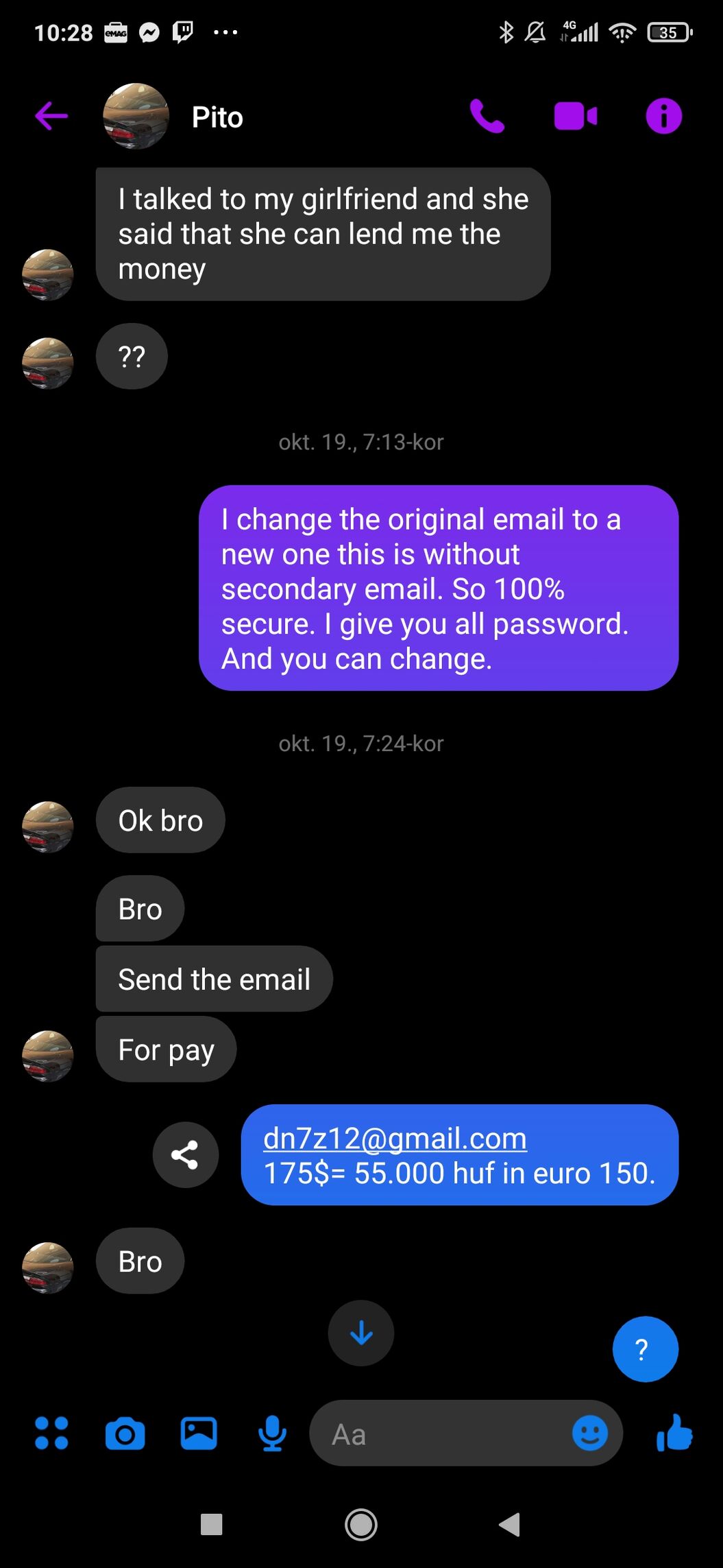 tehát tudatosan átvert... természetesen többször kértem, hogy találjunk kompromisszumos megoldást, de nem hajlandó. Ezek után szeretném visszakapni a pénzem, ha megtéríti, visszaküldöm a csomagját természetesen. Minden fotózva, üzenetek megvannak, minden engem igazol. Nem csalni akarok, de nem ezt szoktam meg német emberektől, hogy így álljanak az üzlethez.V/ KÖSZI!