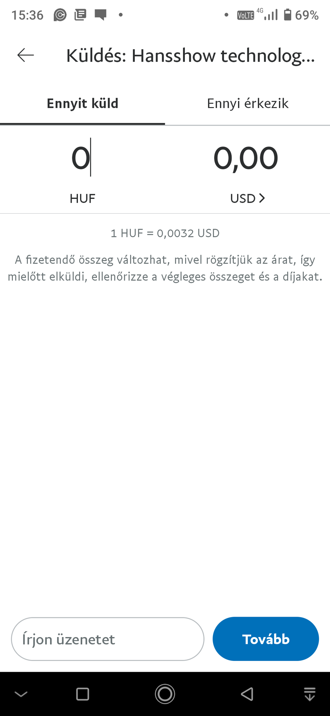 A személyes tranzakciónak minősülő küldés általában ingyenes, ha pénzváltás lenne, akkor van konverziós költség, kiírja küldés előtt ha van díj.