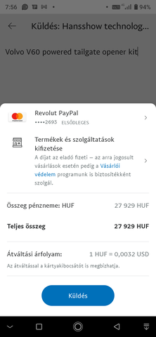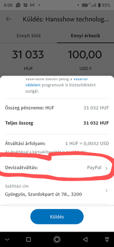 A 2. képen látható hogy a PayPal a váltó, mert ez az alapértelmezett küldés esetén, a linkre bökve tudod megváltoztatni a kártyakibocsájtóra, az látszik a 3. képen, a 4. képen a végeredmény hogy az adott deviza és összege van kiírva és értelemszerűen az fog a kártya felé elmenni terhelésként. -
