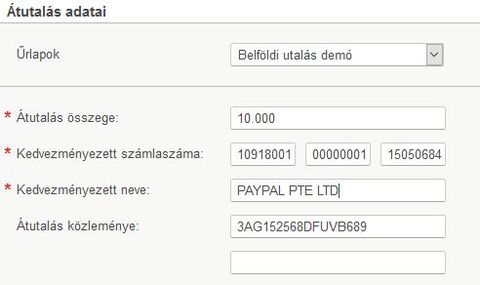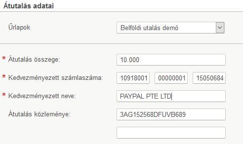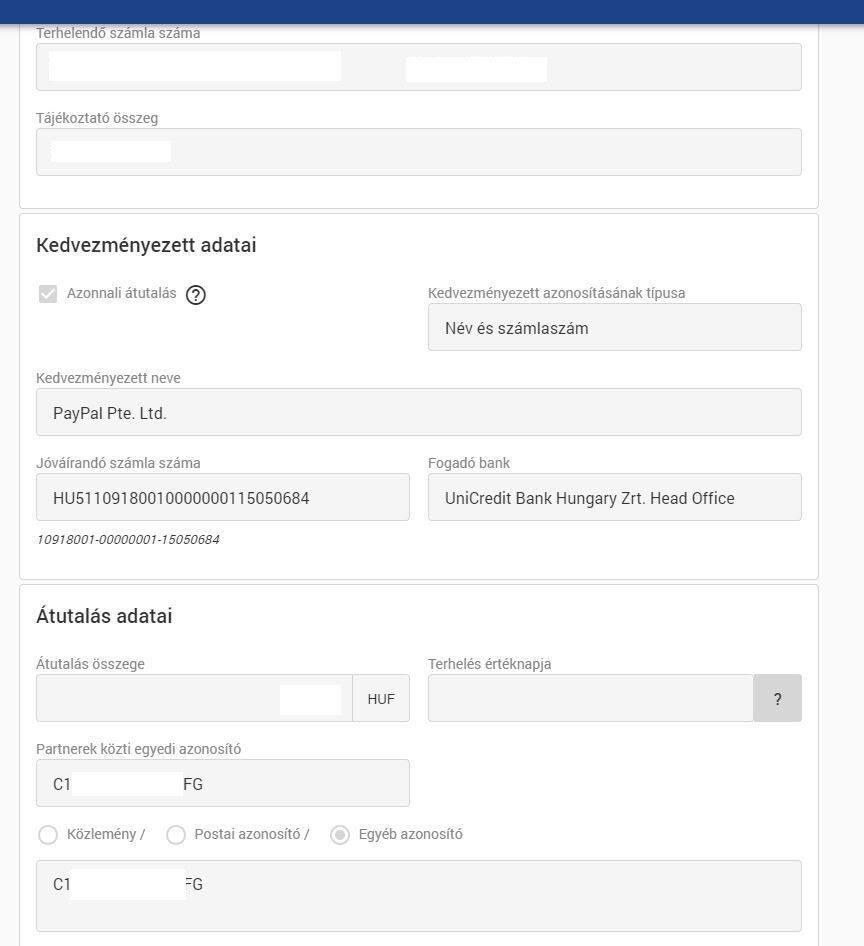 A közlemény rovatba meg lett adva transfer id (átutalás azonosítója), úgy hogy más nem került bele.