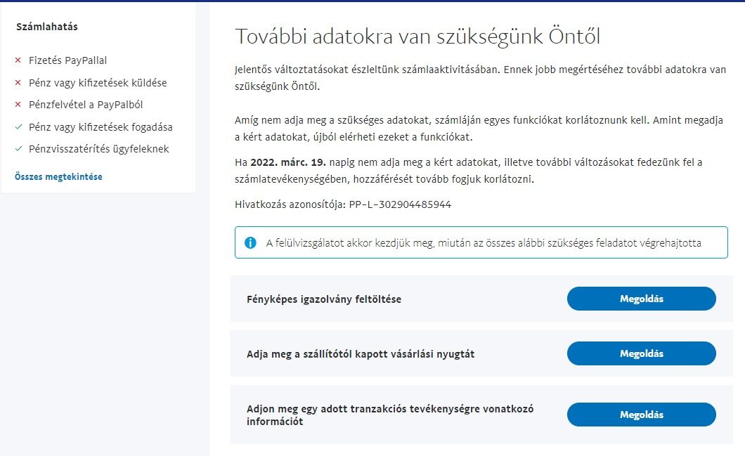 Most hivtam a Paypalt a magyar számon, és nem engedik bekötni sem a transwer wise sem a revolutot.