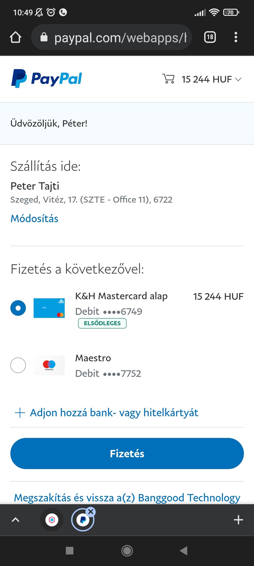 Közben megjött a PayPalra a pénz.