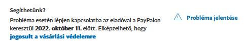 Később jött az email hogy kellene még egy email másolat az eladó refundjáról vagy paypal tranzakcióról, és van 2 hetem pótolni ezt.