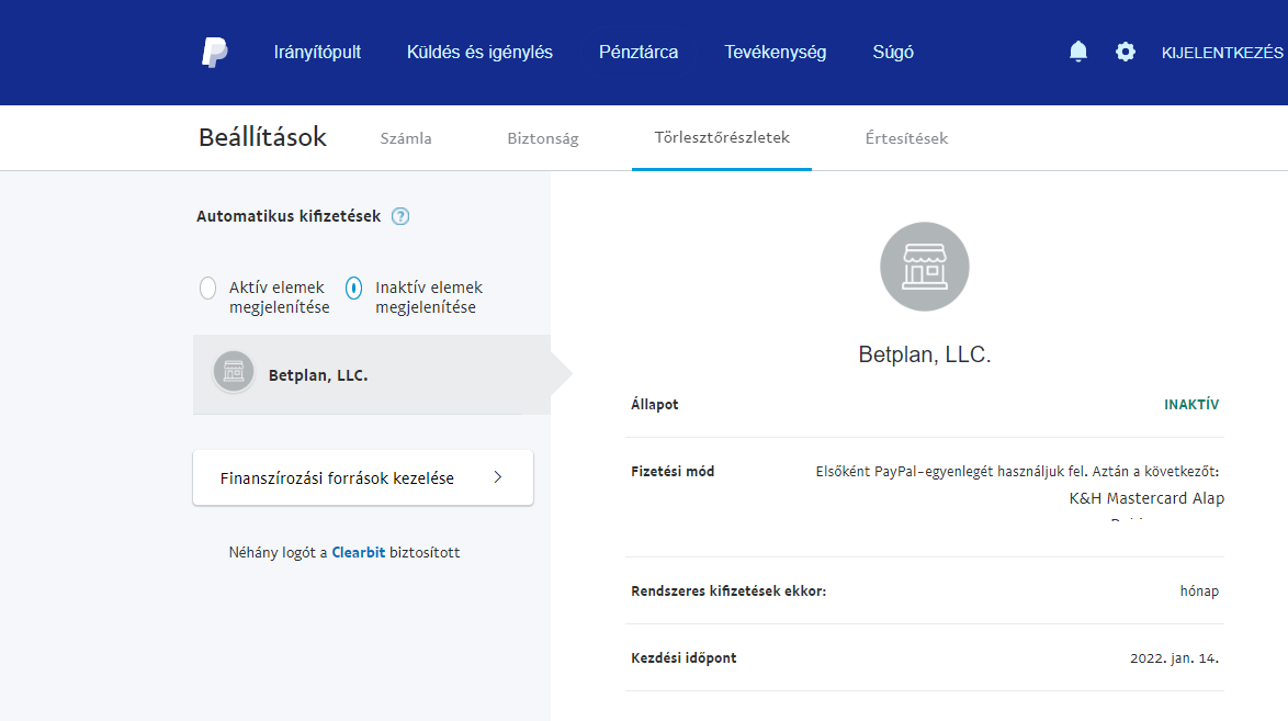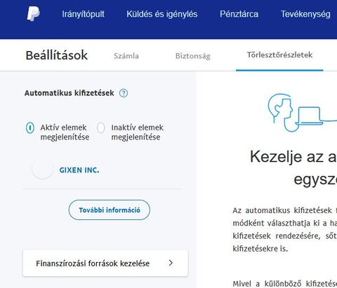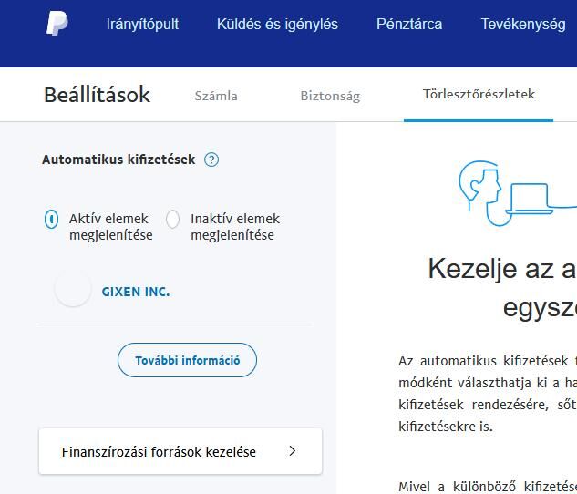 Szóval.. 2021 decemberében regisztráltam a Paypalra és még karácsony előtt előfizettem (bankártyás utalás) egy szolgáltatásra itt kezdődtek a bajok... ugyanis rákattintottam arra, hogy az automatikus fizetésem aktív állapotba kerüljön azaz engedélyeztem, hogy a paypal minden hónapban automatikusan utalja a szolgáltatásra a megadott összeget. Ezzel még nem is lett volna nagy baj viszont én 2022 februárban már nem szerettem volna igénybe venni ezt a szolgáltatást (egyébként sporttanácsadó oldal..).