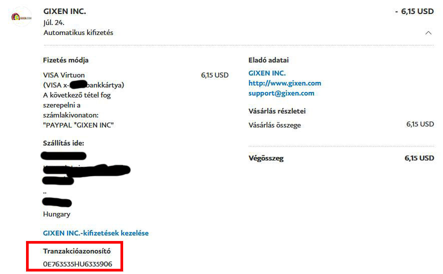 Tevékenységek menü pont és 2022-re, az adott levonás mint Automatikus kifizetés sorára kattintva ott látod alul a tranzakció azonosítót és a PayPal azzal tud mit kezdeni.