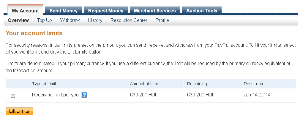 Lehet rakni maximum keretet a paypal account-ra? Gondolok arra, hogy pl. napi maximum tranzakció 250$ legyen. (egyfajta biztonság gyanánt) -