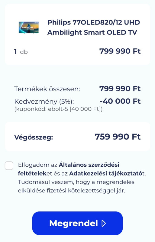 Ha valaki tervezi a 65OLED820-at (469.690 Ft), akkor nézegesse az almát, mert szinte mindennap lehet venni belőle.