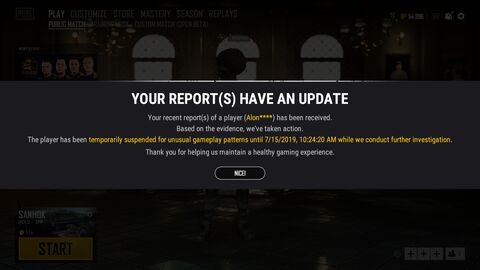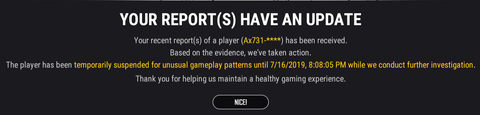 Ma délelőtt szinte minden meccsben találkoztunk csalókkal mi is. Volt, hogy egy egész team minden tagját feljelentettük. Haverom kapott is szinte rögtön értesítést, hogy ment a ban. Gondolom 1 gamen belül nem csak mi nyomtuk fel.