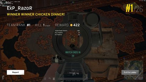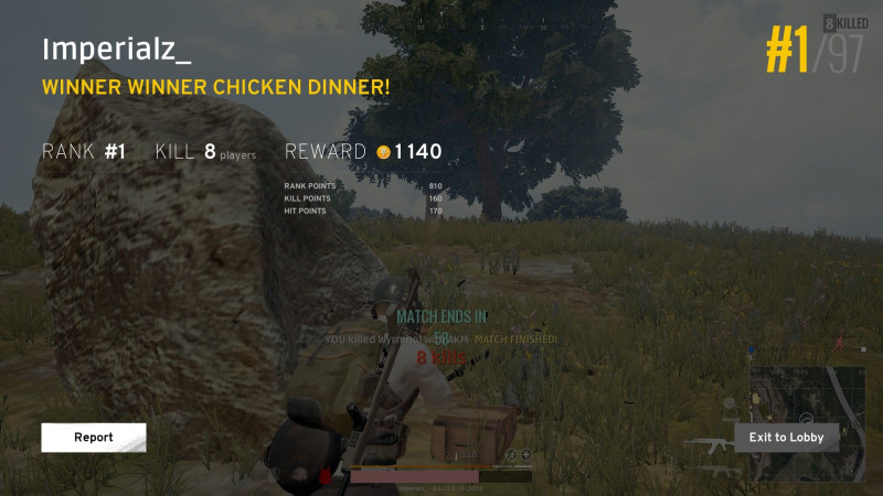 3 óra játék után nekem is meglett az első chicken dinner, igaz sqaudban 2 killel, csak úgy örültem, hogy képet elfelejtettem