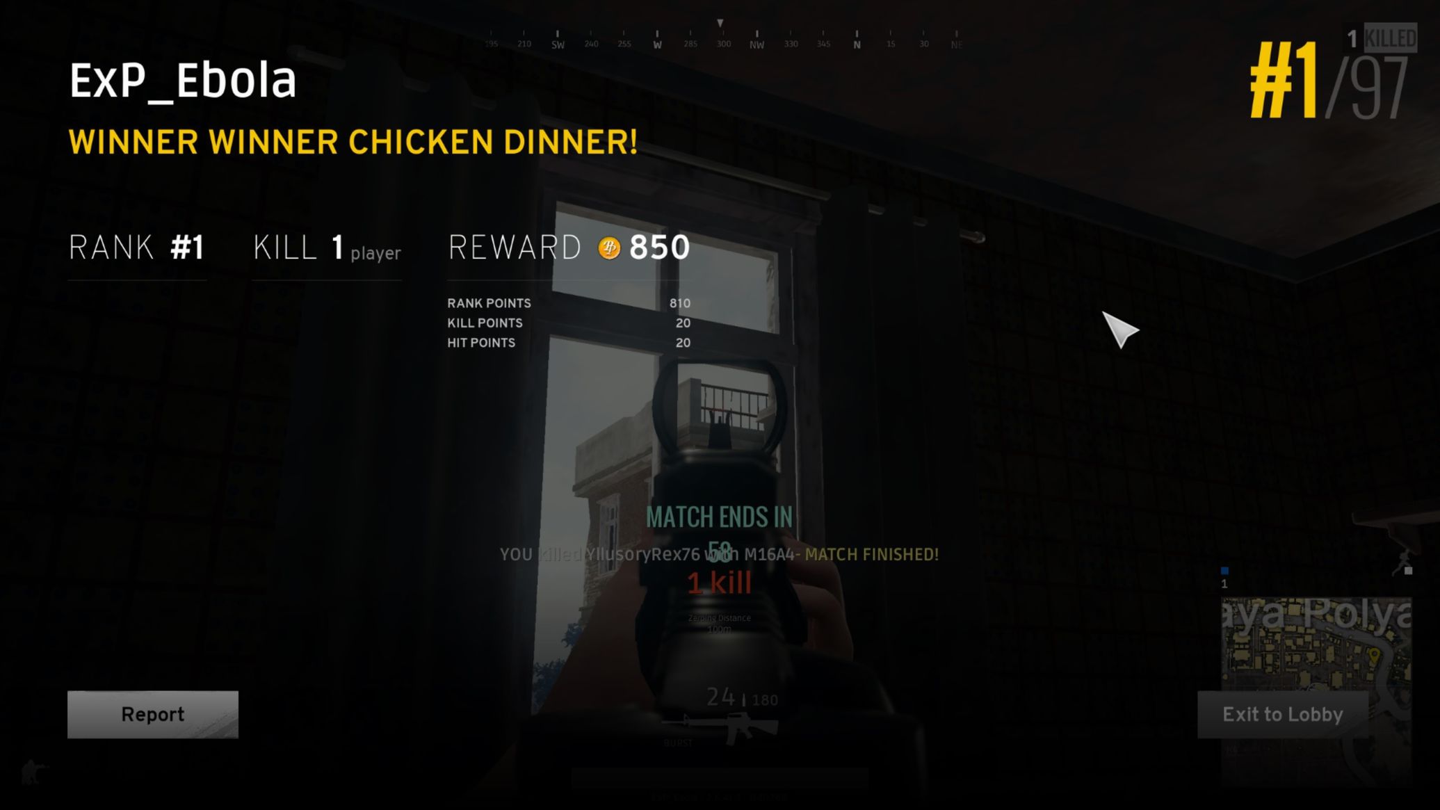 Viszont most éjjelre jött egy másik haverom, és vele is duo vs squad-oztunk, ami már jobban indult, mint előtte, majd a 3. meccsre meg is lett a csirkevacsi:Ezután még egy 3. hely sikeredett, szintén 4 kill.