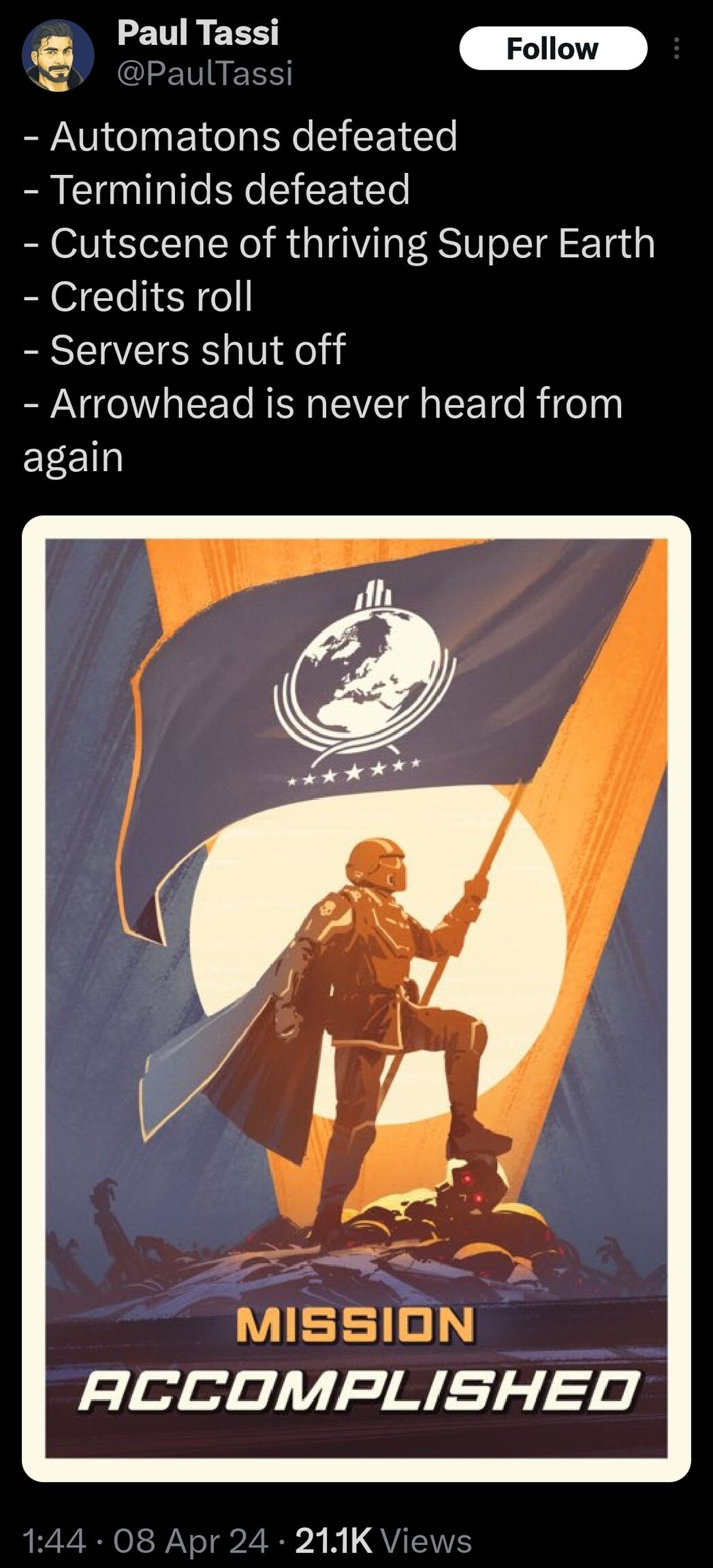 Napi jó hír, hogy Helldiversbe sikerült lecserélnem az outfitem és nem is crashel ha váltani akarok. Nem tudom volt-e azóta patch, de most egy ideje nem vágott ki. Végre!
