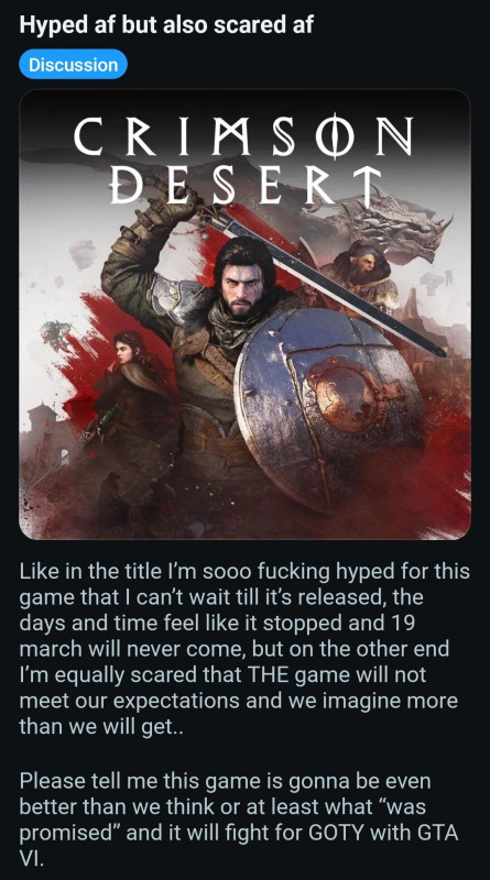Itt jön ki az, hogy a playstation közösség a PS4 érában hozzászokott a kitűnő playstation exkluzív játékokhoz, de a ps5 életciklusa alatt ebből szinte szart sem kaptunk..... így maradt nekünk a Crimson Deserthez hasonló játékok, mint remény, amit agyon hypolt az internet, meg ez a fórum is, így sokan felrúgták az ebben a fórumban is ezerszer kitárgyalt arany szabályt; semmit nem szabad előrendelni!!!....amibe lehet én is beleestem volna, ha lenne hozzá magyar felirat...