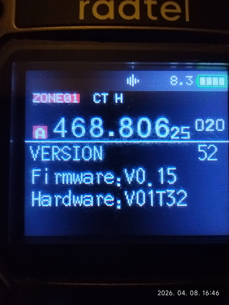 Annak mennie kell. Eddig kb. 5 Radtel RT920 volt a kezemben, mindegyiket lehetett frissíteni, és a weboldalon sincs jelölve, hogy a letölthető firmware-ek milyen hardver verzióra vannak. De most megnéztem azt a rádiót amit én használok tavaly nyár óta, ez szintén V01T32, jelenleg 0.15-ös fw-n, de volt rajta 0.14, 0.16 és 0.17 is, szóval oda-vissza cserélhető rajta a szoftver.