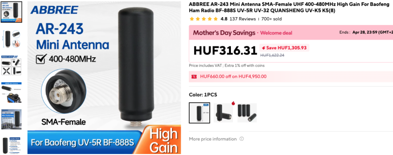 UHF/VHF antennát tudnátok ajánlani? UV-K5 rádióhoz.
