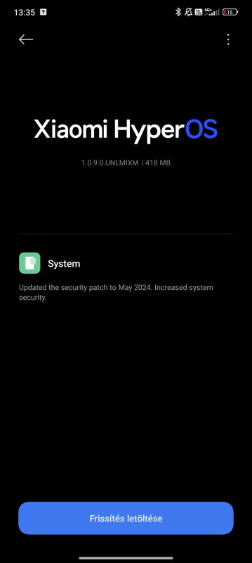 Nálam most frissített a telefon. Egy 2024 májusi biztonsági frissítés érkezett. -