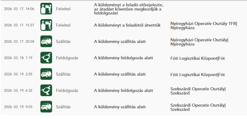2026. 01. 08. 1:44 Fóti Logisztikai Központ|Fót " Azóta ott stagnál.Remélem idén február közepéig megérkezik. Bár vannak kétségeim.