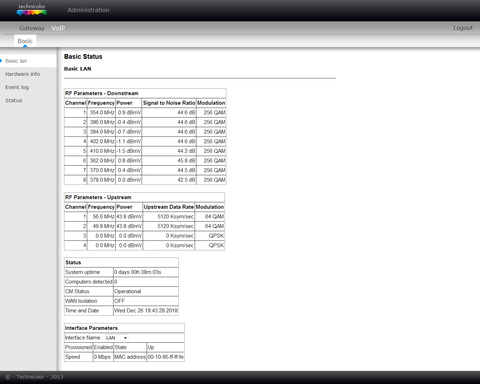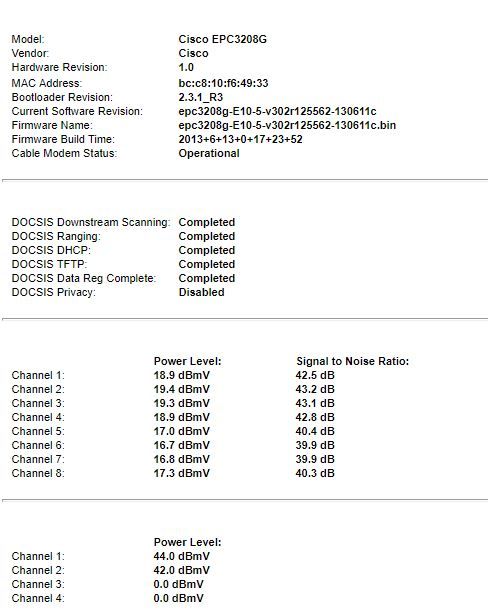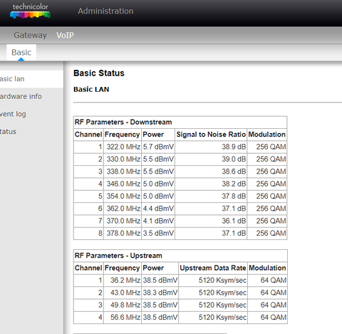 Egyébként általában a magasabb pozitív értékek még jók, ugye negatív irányba minél kisebb az érték (szám szerint nagyobb), annál gyengébb a jelszint és a modem annál kevésbé tudja hasznosítani a bejövő jelet, pozitív irányba viszont más tészta, mert ott nagyobb a "tűrés" mint negatív irányba, persze azért ott sem a végtelenségig, de azért magasabb. Egy külföldi szakmai fórumon/oldalon, talán a cablelabs-on olvastam erről egy részletes leírást, ahol szépen le van írva ez, illetve hogy mennyi a maximum érték PL esetén, meg milyen SNR-el, illetve mikor milyen esetben léphet fel csomagvesztések, meg hasonlók, ha valamikor megtalálom, akkor én is újra elolvasom, mert őszintén szólva most én sem vagyok benne biztos, hogy nem-e mondtam véletlen hülyeséget, mármint jelszintek terén.Hasek99: Olyasmit kellene nézni, mint amit Wasp91 is printelt, viszont hogy helyileg hol van azon a modemen belül, azt nem tudom.