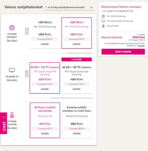 Internet: 1000/25 / 1000/200 Mbit/s TV: 33 HD +105 SD Telefon: Alap = 7 840 Ft/hó