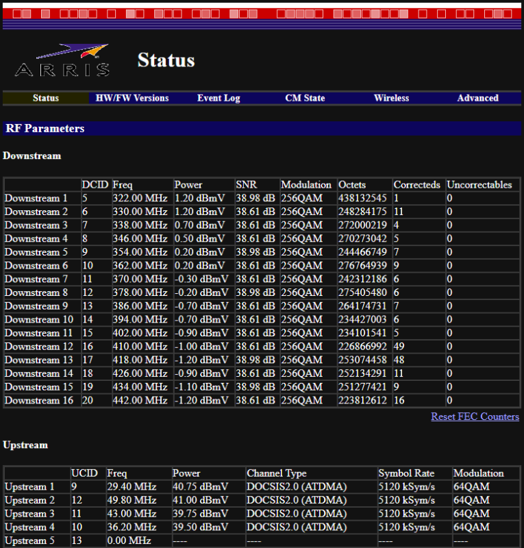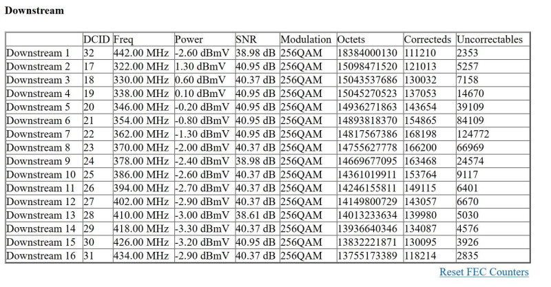 Igen, de azt nézem egyébként az összes csatornát nézve, hogy azért mert megnőtt a terhelés a hálózaton, valószínűleg nem is kicsit. Kíváncsi lennék, hogy ha most lenne egy ott egy másik, mondjuk Arris modem 500-as hozzáférési lehetőséggel (a szerelőknek van jogosultsága a modem mellé beállítani egy másik modemet teszt lehetőséggel), akkor az mennyivel tudna szedni a hálózatból.