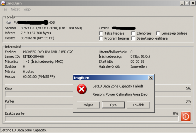De az utolsó hengerből kb. 6-8 lemezt elszúrt. Elkezdte az irást majd valahol az elején lefagyott és irási hibára hivatkozva megszakitotta a folyamatot. A progi CDBurnerXP.