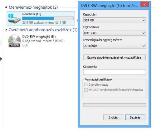 Viszont ha maga a program ajánlott fel UDF-et, az azt jelenti, hogy az író nem ismerte fel a CD lemezt.