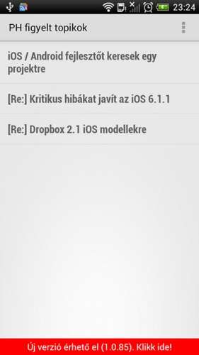 Az alkalmazásban fel lehet venni topikokat és az utolsó 50 hozzászólást lehet olvasni. A hozzászólásra klikkelve az megnyitja a böngészőben az adott bejegyzést és ott már a szokásos mobilwebes megoldással lehet válaszolni.