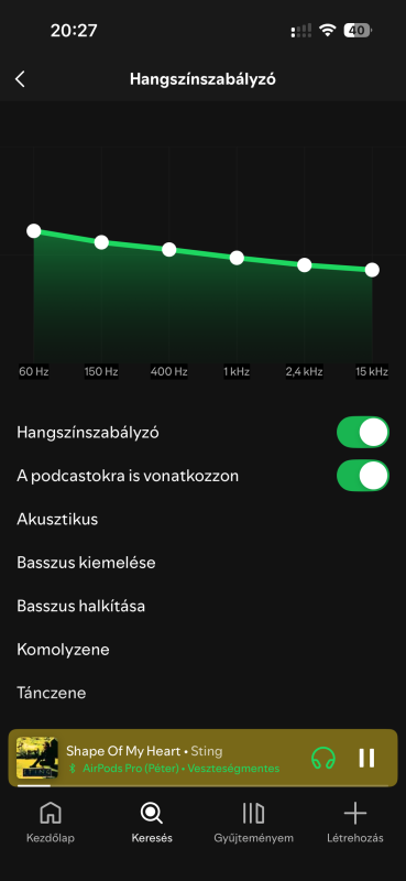 Soha nem használtam 2-t, de szerintem sokan pont azt fájlalják, amit én is érzek. Lehet, hogy az új akusztika miatt van, de egyes zenék gyönyörű tiszták, mély, éles basszussal, de mégis nagyon jó a szeparáció, aztán jön a következő szám, ahol a hangzása nagyon olyan, mintha egy szórakozóhelyen hallgatnám a zenét: erős basszus, éles magas, de összemosott közép nem túl jó szeparációval. Először azt gondoltam, hogy biztos a dal miatt van, rossz mixelés, aztán meghallgattam azokat a dalokat másik fülesen, ahol ezeket nem tapasztaltam. Szóval nekem jobban bejön mondjuk egy Technics AZ100 kimértebb, de tisztább hangzása, mint az AP3-nak. Látom, hogy az Apple a frissítésekkel most is finomhangolt, de van egy olyan érzésem, hogy maradnak ennél a hangzásnál, mert ezt jobban szeretik az emberek, izgibb, de nekem úgy látszik inkább a steril, stúdió hangzás jobban bejön.