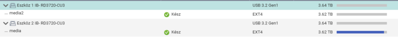 Sebességben is jó, a nas látja külön-külön a 2 disk-et.