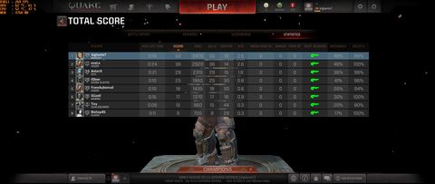 Nekem kemény 200 óra sima TDM alatt már azért a QC-be szépen berögzültek, hogy hol épp milyen fegyverekkel lehet érvényesülni. Fejből vágtam, hogy melyik helyen milyen gyorsan respawnol a páncél/élet, illetve a fegyó. Szal félre értés ne essék, azért tudok én sima TDM-be is érvényesülni, taktikát alkalmazni, de nem az az igazi asztalom. Ahogy anno 2000-2004-ig is inkább instagib rail szervereken nyomultam már inkább Q3 Arena-ba. 1300 óra Crysis 3 multi után jöttem át ide, így most első körben az instagib-el akarom, egy minimum 50%-os aim-re felhozni magamat átlagba a rail-el. (Most tartok 44%-nál). Utána jöhet vissza a TDM. Lehet meg is szabadulok az 1080 Ti-omtól, amíg még ilyen geci drága, mert egyszerűen fölösleges, erre a QC-ra, főleg ha mellette a frissen kijött AAA gamekkel csak elvétve tolom.