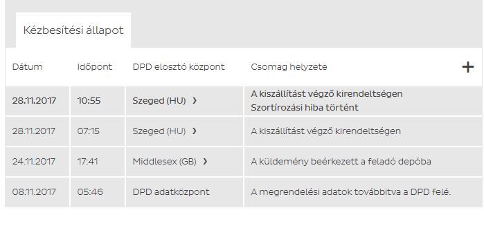 Nekem múlt héten pénteken délelőtt hozta a DPD futár az egyik csomagomat. Vasárnap kora délelőtt jött az SMS a DPD-től: “A 15505983577795 csomagot kézbesìtjük ma 08:35-09:35. Utànvét:0HUF. Nyomon követés, àtütemezés a www.netcsomagom.dpd.hu -n HmnUty kòddal. DPD”