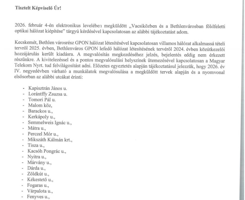 Mi is a listán vagyunk, pedig nálunk már van T Com optika