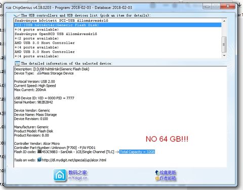 A Chip Genius nem mondta meg, hogy mekkora.