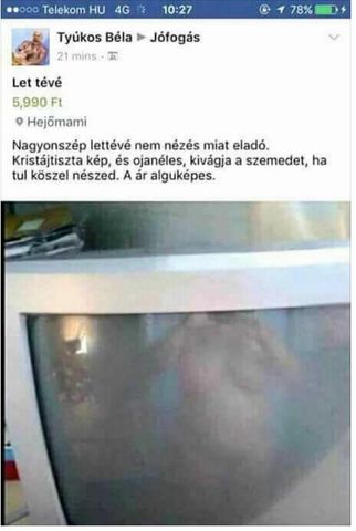 Kedvencem hogy Facebook vatera és minden más tele van veszélyes hulladék crt tv hirdetésekkel 5-10 ezerért. Mostanában még rosszakat is hirdetnek 5 ezerért. Nekem is volt pár működő, mindet oda adtam rászorulónak, nem lenne pofám pénzt kérni értük úgyse kezelik normálisan a mai 16:9-es adásokat. Ráadásul még valamilyen beltéri is kell hozzá mert vége az analóg adásoknak.