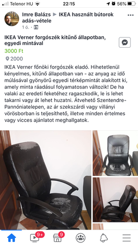 Ennyit megér. Nekem is hasonló forgószékem van és hát már az is hámlik. De ahogy nézem ez jobban hámlik mint az enyém ellenben az ülőrésze jobban néz ki nekem nagyon ki van ülve a két combomnál.