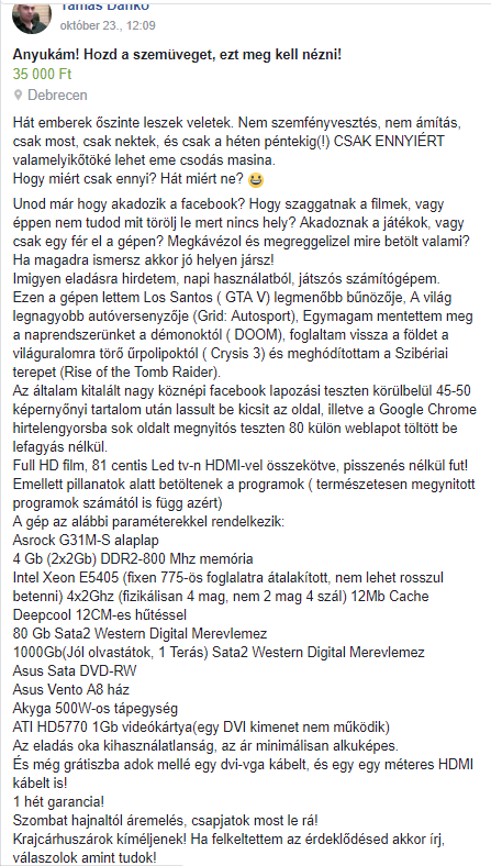 "név nélkül, hirdetés linkelése nélkül írjuk ki a fájdalmunkat", tehát a Hardverapróról