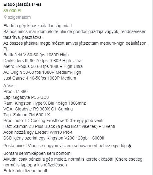 "név nélkül, hirdetés linkelése nélkül írjuk ki a fájdalmunkat", tehát a Hardverapróról
