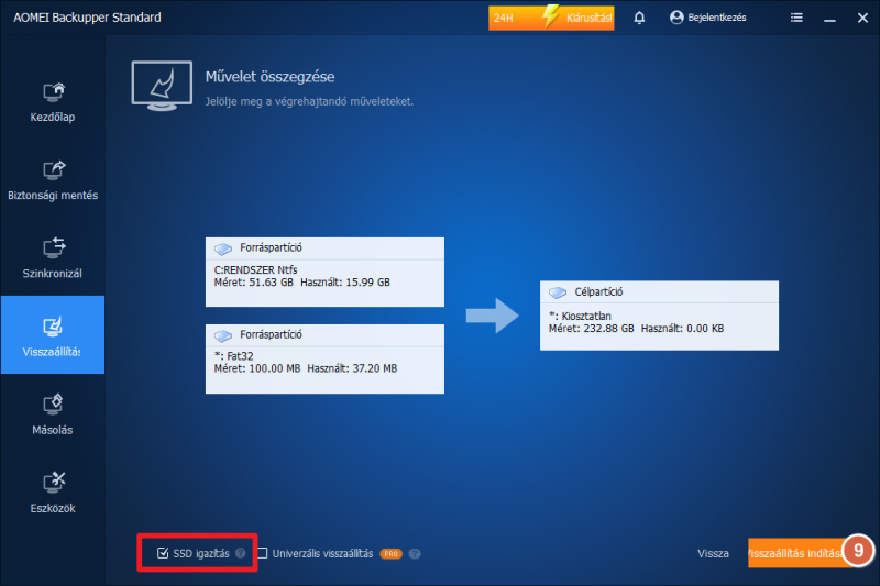 UI: Pl egy rendszermentést visszaállítani 5 kattintás (lásd cikkben a screenshot-okat), ha kisebb meghajtóról egy nagyobb meghajtóra kell visszaállítani, akkor meg nem 5, hanem 6 klikk...