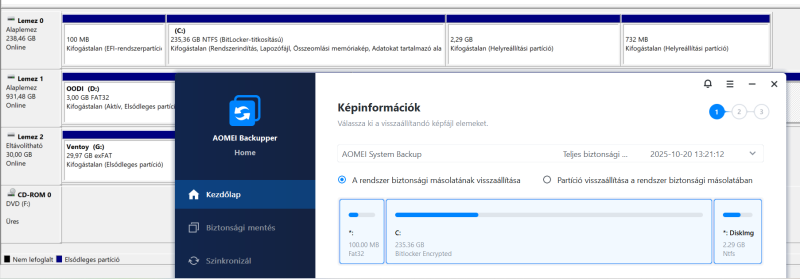 Ugyanakkor elég meglepő, hogy visszaállításkor már csak két partíciót ajánl fel visszatöltésre.