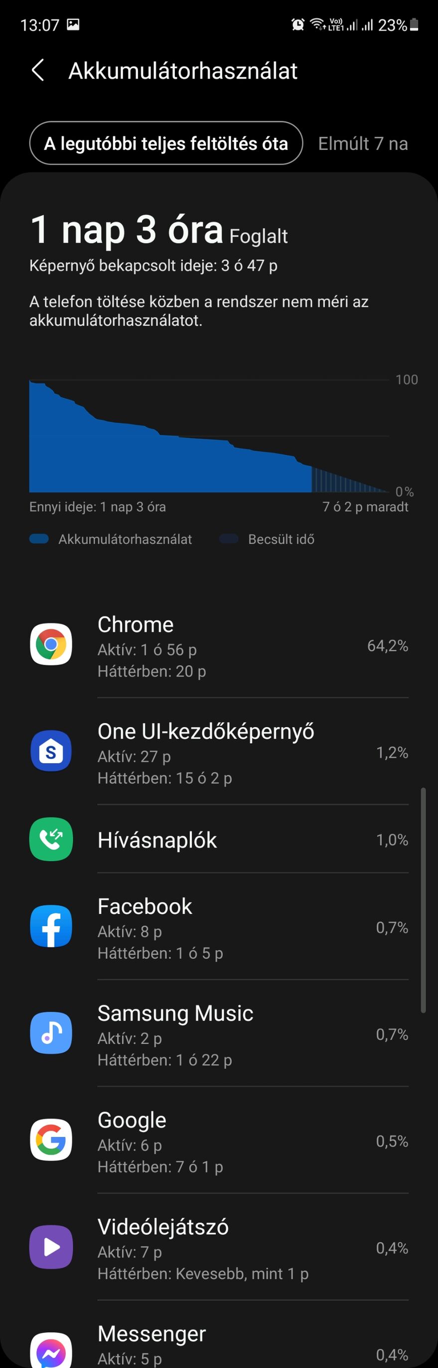 Én most figyelem, majd 1 hetet ki fogok átlagolni. Én ugye tegnap este (18 óra) töltöttem föl 93%-ra, úgy végeztem el a teszteket, telepítettem a frissítést, majd újabb teszt (geekbench, leslien kérésére), aztán használtam úgy, mint máskor. Jelenleg 24%-on áll úgy, hogy a tegnapi nappal a frissítést követően kvázi kinullázta az akksiadatokat, tehát 18 órától van adat. Tegnapi napra ez jelent 3 óra 27 perc képernyőidőt, mai napra 44 percet, és így áll 24%-on még.