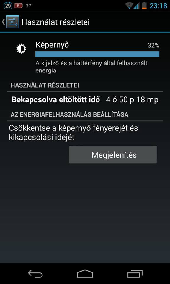 CM 10.2 akksi ideje... Egy éjszaka alatt 3%ot merült bekapcsolt wifivel, délelőtt meló volt, nem nyomkodtam, reggeltől készenlétben 7%ot merült, össz-visz 2-3 emailt olvastam. Most negyed óra fórum olvasással 6%ot merült. Tegnap kora délután tettem fel, telepítgettem, belaktam és este 8kor kellett töltőre tennem. Máskor kb ilyen használattal nálam délután 4ig bírta. CM 10.2 előtt CM 10.1 + intersectR kernel volt, ahhoz képest érezhetően gyengébb. Várom, hogy kijöjjön intersectR 4.3hoz is.