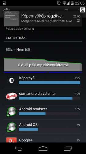 Imádom kézbe fogni és használni. Az akksija pedig simán kibír egy teljes napot, rendes használat mellett (reggel hajnali 3 - 98% / este fél 10 - 32%). Ebben van telefonálás, játék (angry birds), sok-sok net + facebook + messenger, hol wifi-vel, hol pedig mobilnettel.