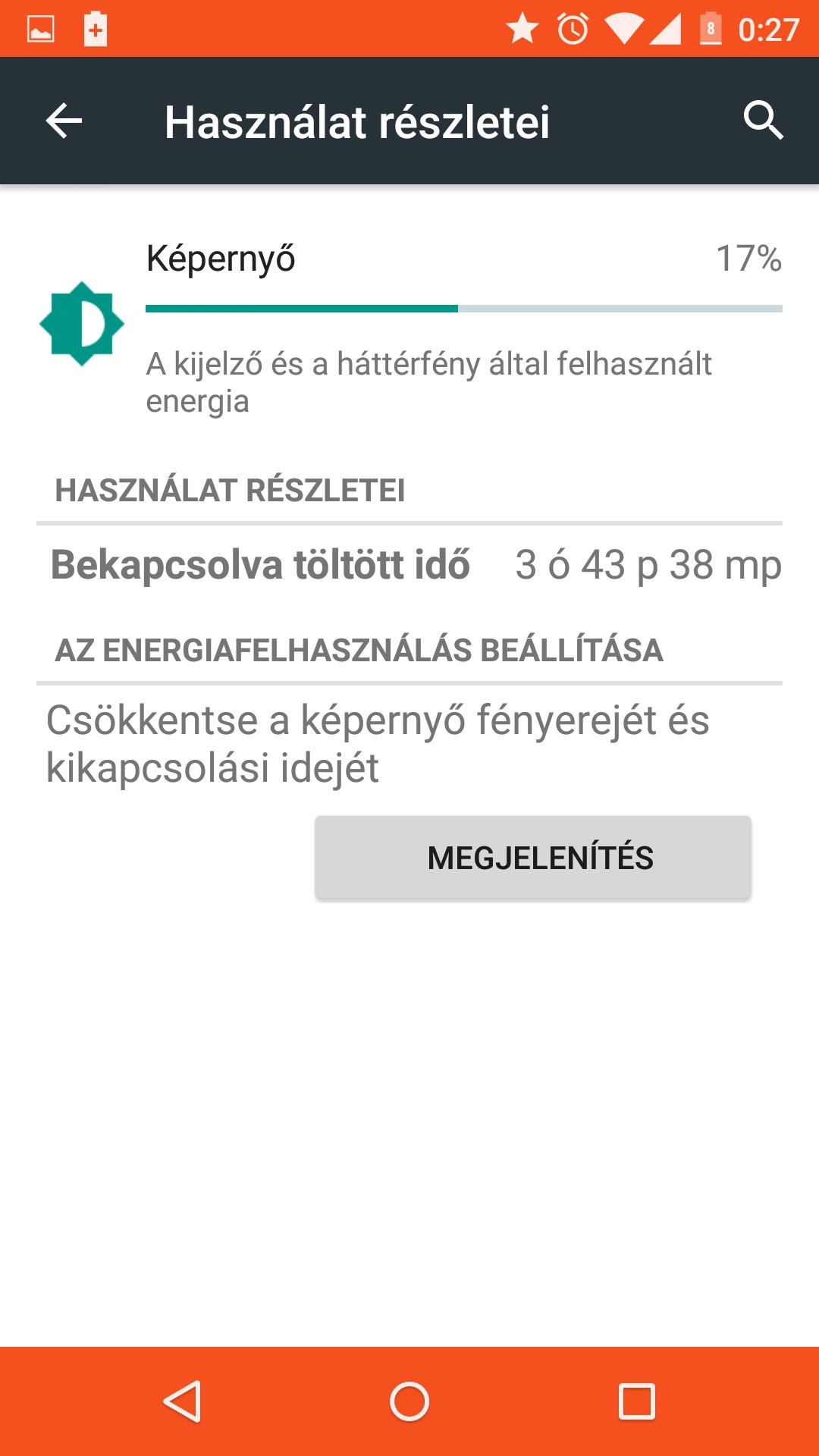 BT-t nem használok, illetve amikor be volt, akkor kb 3 óra SOT-t sikerült vele produkálni. Minden beállítás gyári defaulton van, csak a jelszó nélküi wifikról történő értesítést szoktam kikapcsolni. GPS annyit van bekapcsolva, amennyit a telefon kér, nyilván nem navigációra használom a telefont (max 1-2 perces keresgetések mapsen), de erről itt szó sem volt.